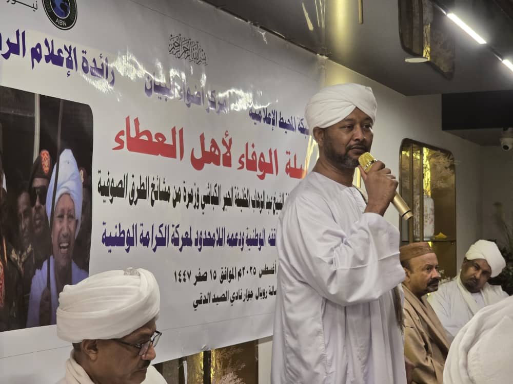 ايضاً يشمل اهتمامكم النواحي الاجتماعية وتسليط الأضواء عليها اذكر حضورنا في الاحتفال الماضي للعام ٢٠٢٤م الذي أقيم بدعوة كريمة من الشبكة للاحتفال بعام انطلاقها الثاني و تكريم بعض من رموز المجتمع الفاعلين في الساحة ويجي ذلك مرتبطاً ومُتصلاً باحتفائكم الكبير لفضيلة مولانا الخليفة عبدالوهاب الشيخ إبراهيم الكباشي ذلك الرقم الذي لا يمكن تجاوزه ولكنك لم تترك لنا شي لنضيفه او نقوله فقد كفيت ووفيت بهذا التكريم البهيج الذي صادف أهله