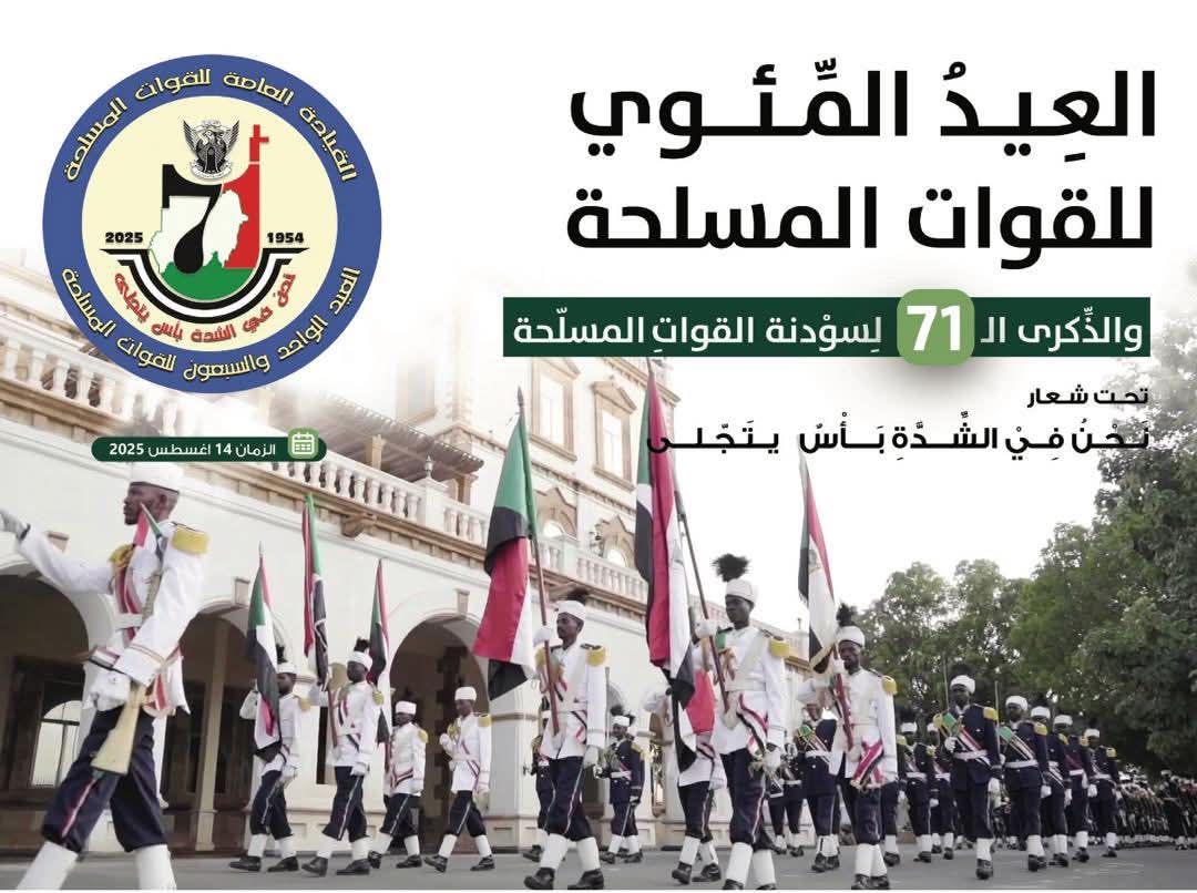 *رغم البلوي والامتحان وضراوة القتال لم تغفل القوات المسلحة السودانية عن الاحتفال بعيدها الوطني ، وهي تخوض معركة الكرامة الوطنية، فاعدت الشعارات التي تلائم الظرف وتتماشي مع الأحداث الجارية ، كما لم تغفل عن إعداد البرامج المصاحبة لعيدها القومي التي تنتظم الولايات في اعراس جماهيرية حافلة وصارخة.*