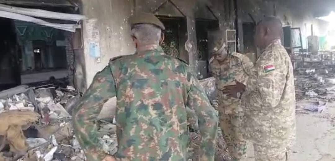 وتأتي الزيارة للوقوف على أحوال المسجد والذي تعرض لعمليات قصف مكثفة من المليشيا المتمردة أثناء معارك تحرير منطقة المقرن وتعرضت حوائط المسجد إلى خراب واسع .