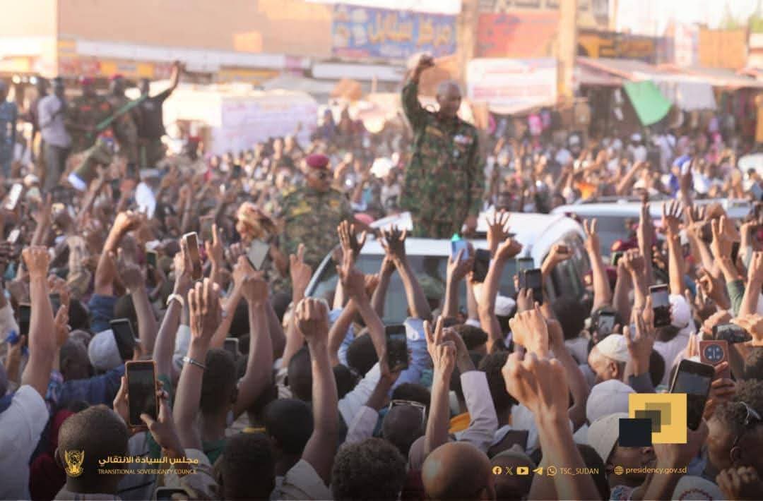 رئيس مجلس السيادة القائد العام للقوات المسلحة، الفريق أول ركن عبدالفتاح البرهان وسط حشود عفوية بأمدرمان غرب الحارات