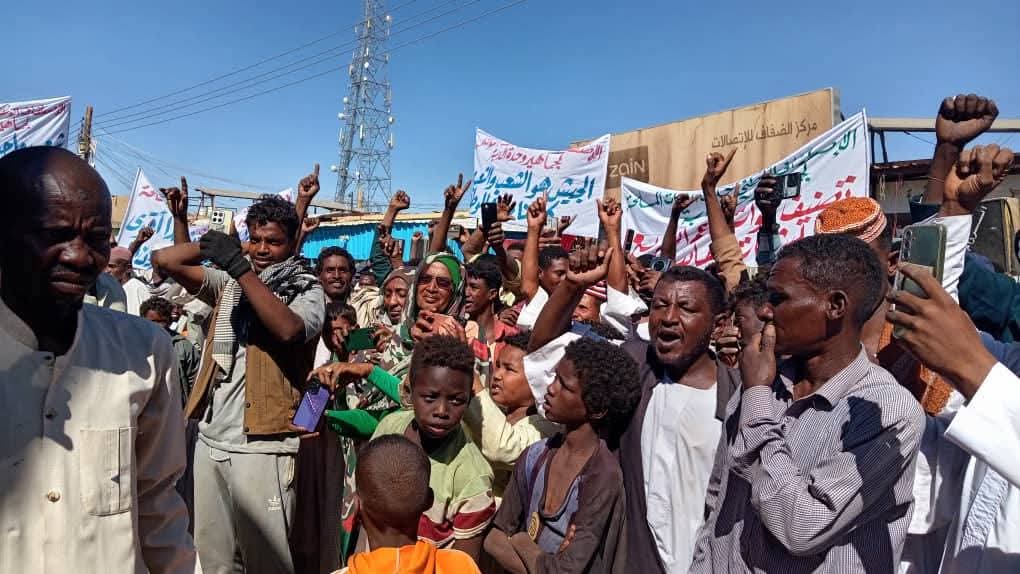 يشار إلى أن الوقفة الاحتجاجية خاطبها كل من نائب رئيس المقاومة الشعبية بالبحر الاحمر وممثل الإدارة الأهلية بشرق السودان وممثل الشباب والطلاب والمرأة وممثل المقاومة الشعبية بولاية الجزيرة وأكدوا في كلماتهم اصطفاف الشعب السوداني ومساندته للقوات المسلحة حتى يتحقق النصر والقضاء على المليشيا المتمردة وتحرير آخر شبر من أرض الوطن من دنس التمرد .