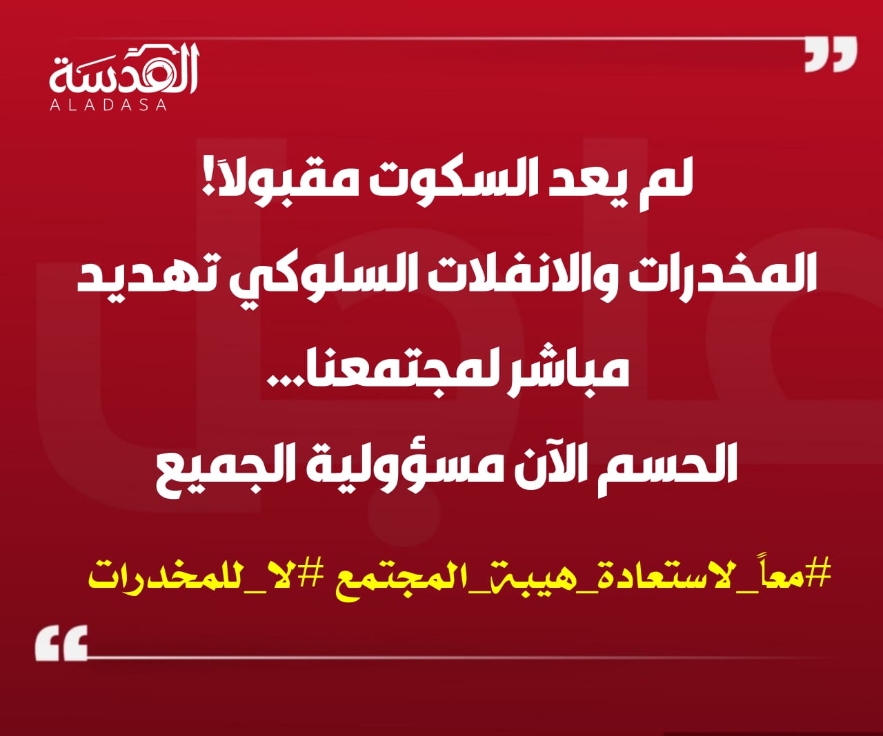 نهيب بالجميع حكومة وجتمع للقيام بحملة واسعة لمحاربة تعاطي المخدرات عملا بقوله تعالى (الَّذِينَ يَتَّبِعُونَ الرَّسُولَ النَّبِيَّ الْأُمِّيَّ الَّذِي يَجِدُونَهُ مَكْتُوباً عِنْدَهُمْ فِي التَّوْرَاةِ وَالإنْجِيلِ يَأْمُرُهُمْ بِالْمَعْرُوفِ وَيَنْهَاهُمْ عَنِ الْمُنْكَرِ وَيُحِلُّ لَهُمُ الطَّيِّبَاتِ وَيُحَرِّمُ عَلَيْهِمُ الْخَبَائِثَ وَيَضَعُ عَنْهُمْ إِصْرَهُمْ وَالأَغْلالَ الَّتِي كَانَتْ عَلَيْهِمْ فَالَّذِينَ آمَنُوا بِهِ وَعَزَّرُوهُ وَنَصَرُوهُ وَاتَّبَعُوا النُّورَ الَّذِي أُنْزِلَ مَعَهُ أُولَئِكَ هُمُ الْمُفْلِحُونَ (الأعراف 157)