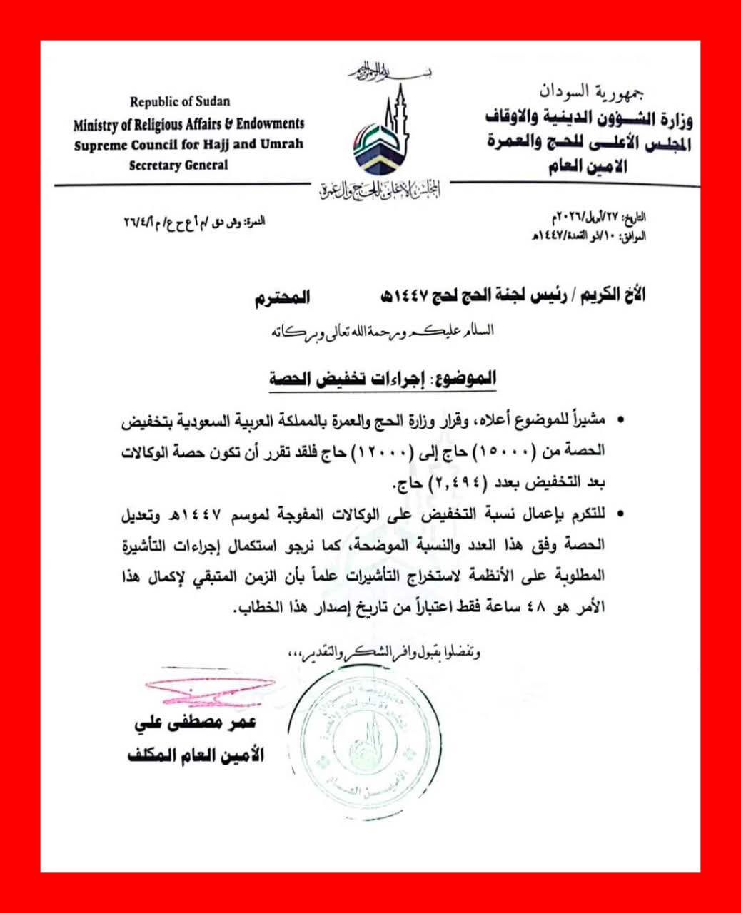 *أخيرا وقع المحظور، وتجاوز ملف الحج والعمرة مرحلة تعاطى المكروه، إلى الولوغ مباشرة في الحرام، ويكون الأمين العام* *للمجلس الأعلى للحج والعمرة المكلف بخطابه الأخير الممهور بتوقيعه قد نعى للأمة السودانية موسم حج عام 1447 هجرية*.